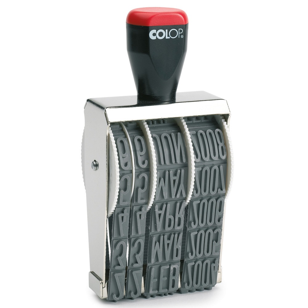 Colop 18000. Datumstempel waarvan de datum 18mm hoog afstempeld. Handstempel te gebruiken in combinatie met standaard inkten en industriele inkten.