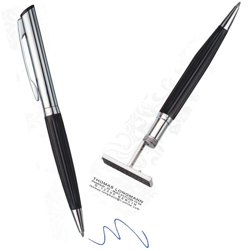 Stempelpen die vaak wordt gebruikt voor zakelijke doeleinden. Plaats in één handomdraai het gemaakte ontwerp op papier met de stempelzijde. De stempelpen beschikt daarnaast ook over een balpen. Eenvoudig om mee te nemen en komt professioneel over.
