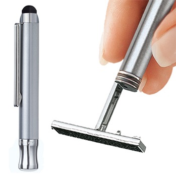 Heri Travel Stamp & Touch 2300. Ziet er uit als een pen en dus gemakkelijk voor onderweg. Stempel met tekst naar keuze en een Touch Pad voor uw tablet of mobiele telefoon.