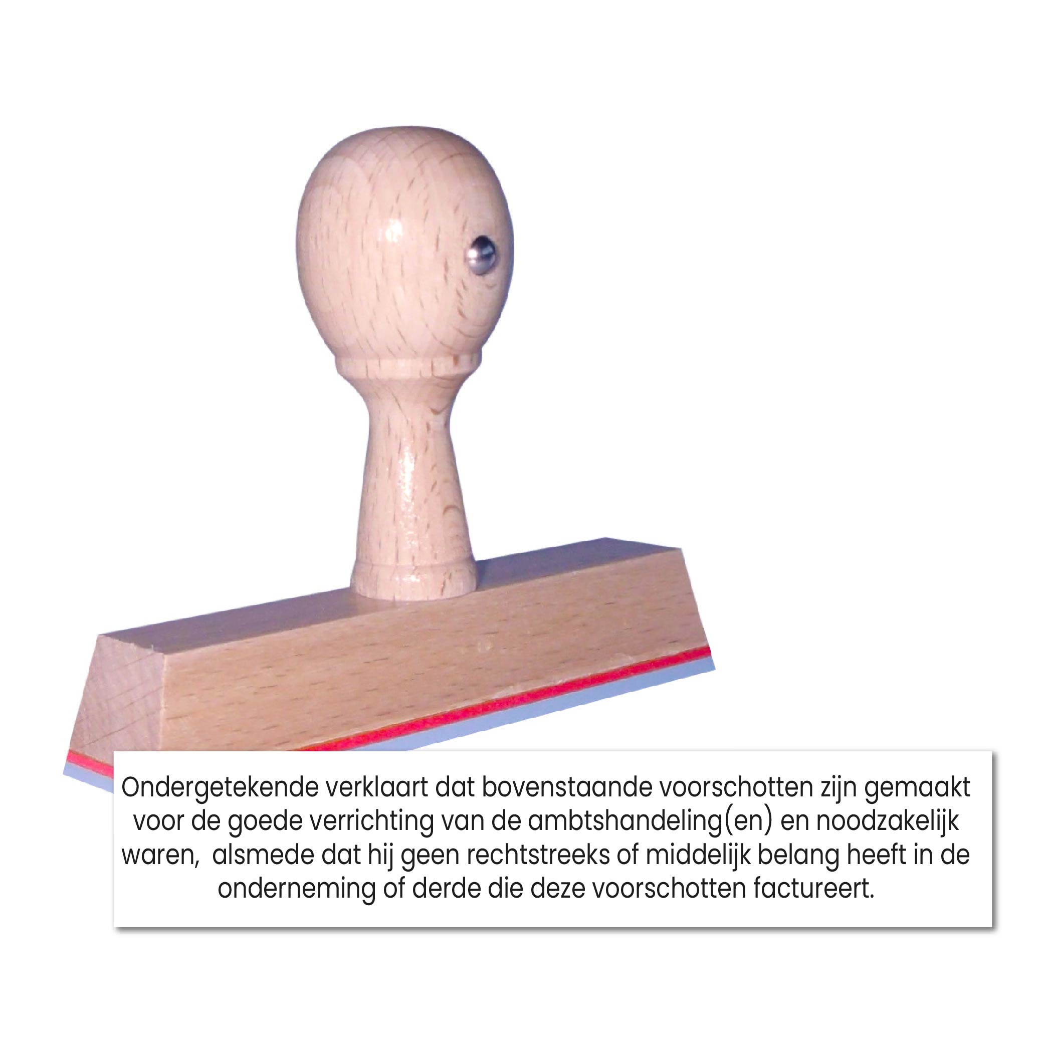 Onze houten handstempel met een indrukwekkend formaat van 100x20mm is met grote precisie ontworpen om tegemoet te komen aan de specifieke behoeften van deurwaarders. Deze stempel is de onmisbare partner voor deurwaarders bij het accuraat markeren van cruciale tekst en symbolen op belangrijke juridische documenten.