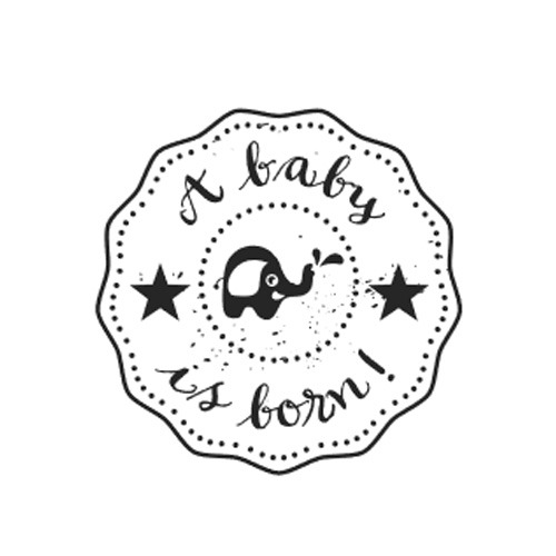 Leuk en eenvoudig handstempeltje voor het zetten van een mooie afdruk. Dit ontwerp bevat een schattig olifantje en de tekst 'A Baby is Born' en is perfect voor het verfraaien van geboortekaartjes en andere babygerelateerde creaties.