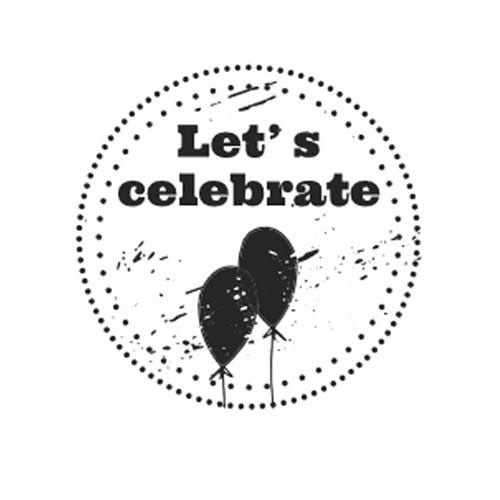 Klein en handzaam stempeltje met tekst Let's Celebrate