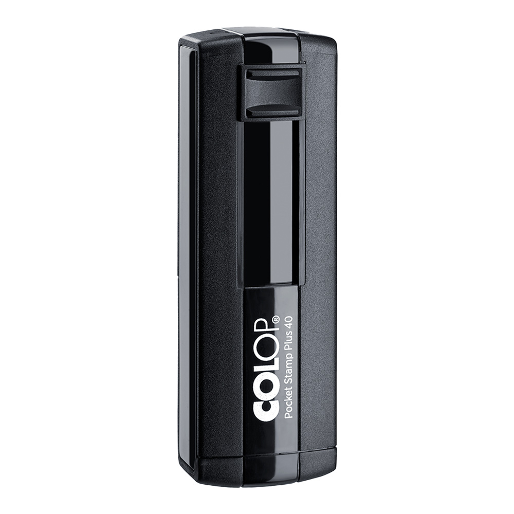 Pocket Stamp 40 PLUS Black. Max. 6 regels.