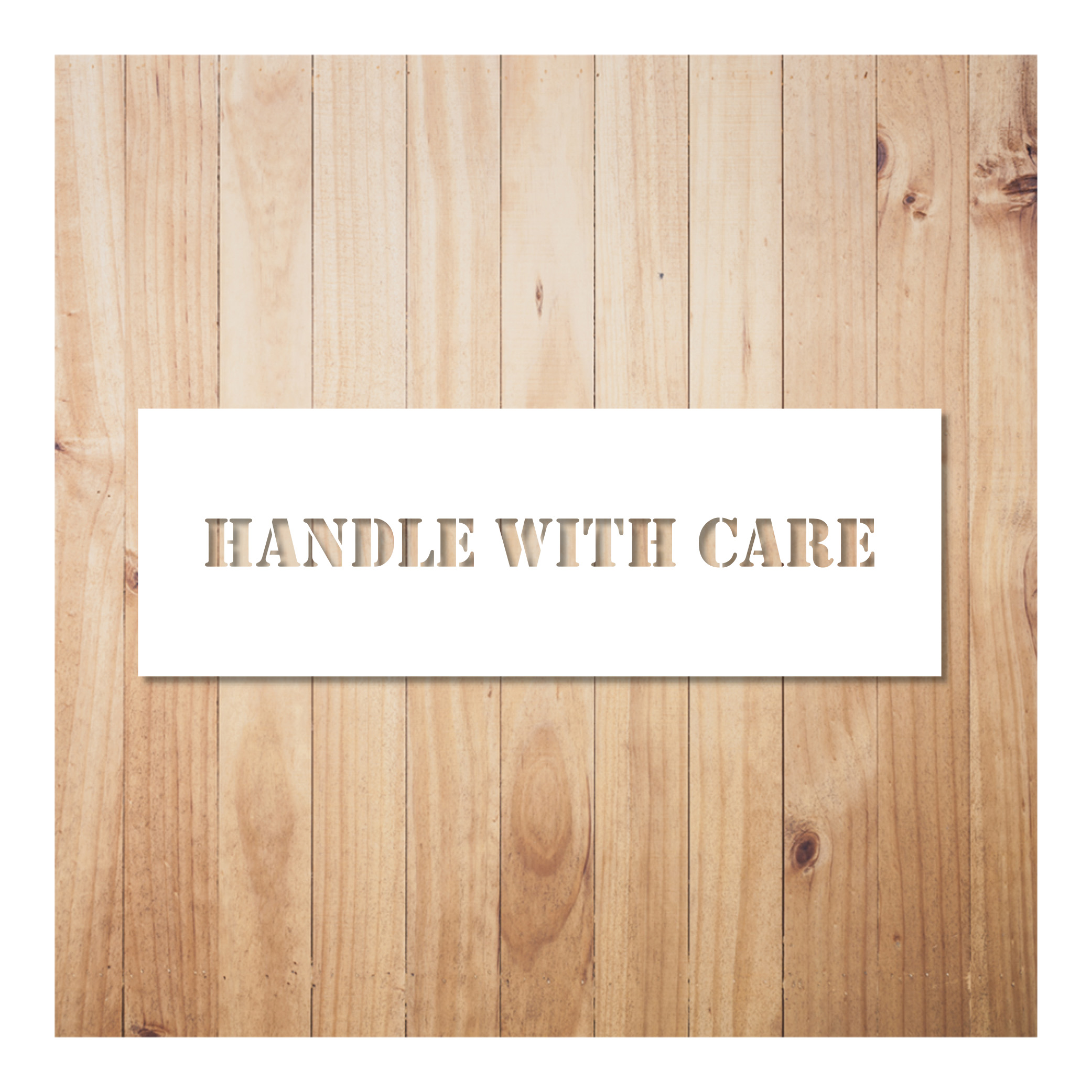 Sjabloon 300x100mm, "Handle with care", Stencil