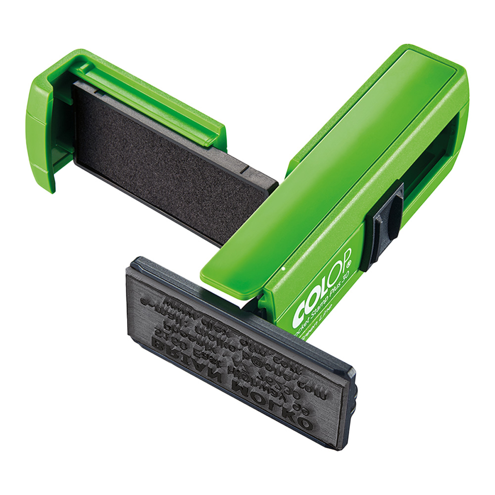 Ontdek nu de Pocketstamp Plus 20 Green Line: de ideale pocket stempel met een handige rechthoekige afdrukfunctie. Deze innovatieve stempel is uitgerust met een ingebouwd inktkussentje, waardoor het stempelen moeiteloos en gemakkelijk wordt.