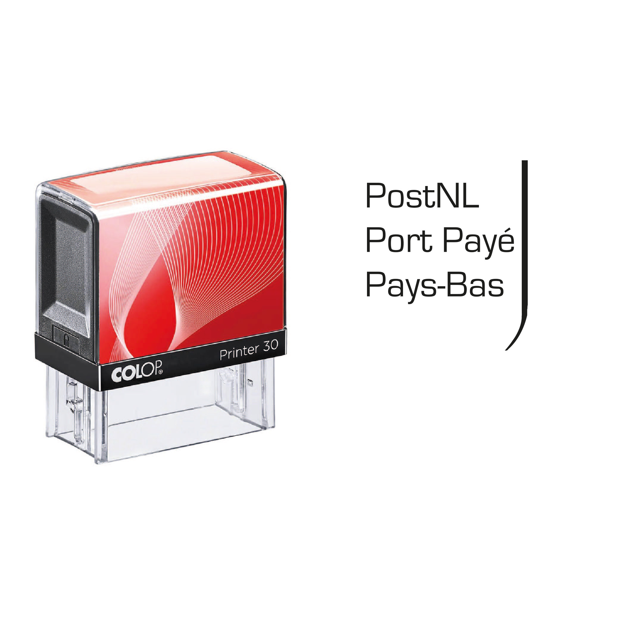 PostNL "PORT BETAALD" met PostNL logo voor internationaal gebruik. Zelfinktende Colop stempel.