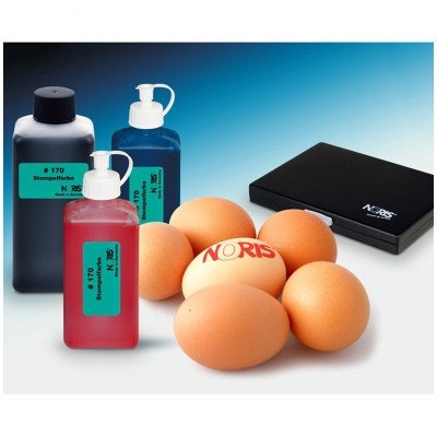 Tenslotte: Noris 170 eierinkt is een hoogwaardige inkt speciaal ontworpen voor het stempelen van eieren. Het biedt heldere en levendige kleuren op eierschalen. De inkt is voedselveilig en vervaagt niet tijdens het koken. Het is echter wel handiger om je ei te bestempelen NA het koken.