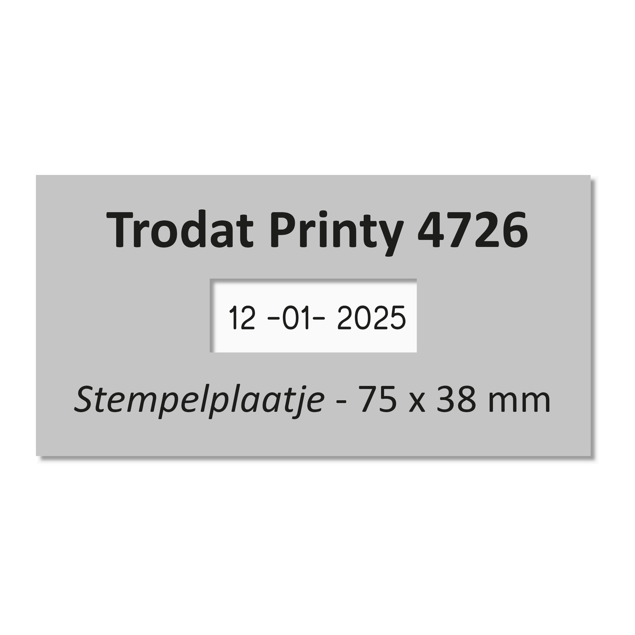 Stempelplaat met tekst en datum t.b.v. Trodat Printy 4726 datumstempel.