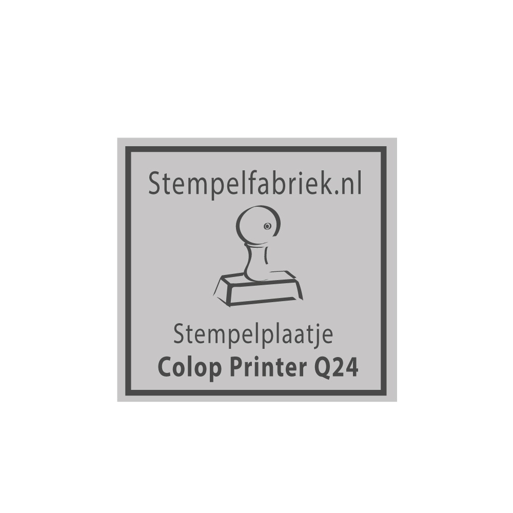 Stempelplaatje max. afmeting 24x24 mm. t.b.v. Colop Printer Q24. Indien de tekst op uw stempel niet meer juist is (b.v. door verhuizing) kunt u hier een nieuw plaatje bestellen. U kunt dit gemakkelijk zelf vervangen. Vergeet niet ook een nieuw inktkussentje te bestellen. Het vorige kussentje is ingesleten op de oude tekst.