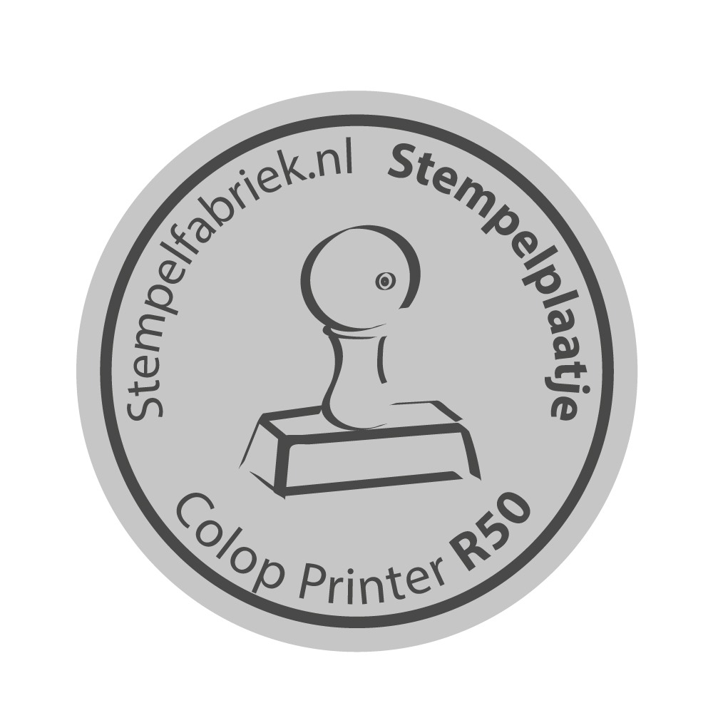 Stempelplaatje max. afmeting Ø 50 mm. t.b.v. Colop Printer R50. Indien de tekst op uw stempel niet meer juist is (b.v. door verhuizing) kunt u hier een nieuw plaatje bestellen. U kunt dit gemakkelijk zelf vervangen. Vergeet niet ook een nieuw inktkussentje te bestellen. Het oude kussentje is ingesleten op de vorige tekst.