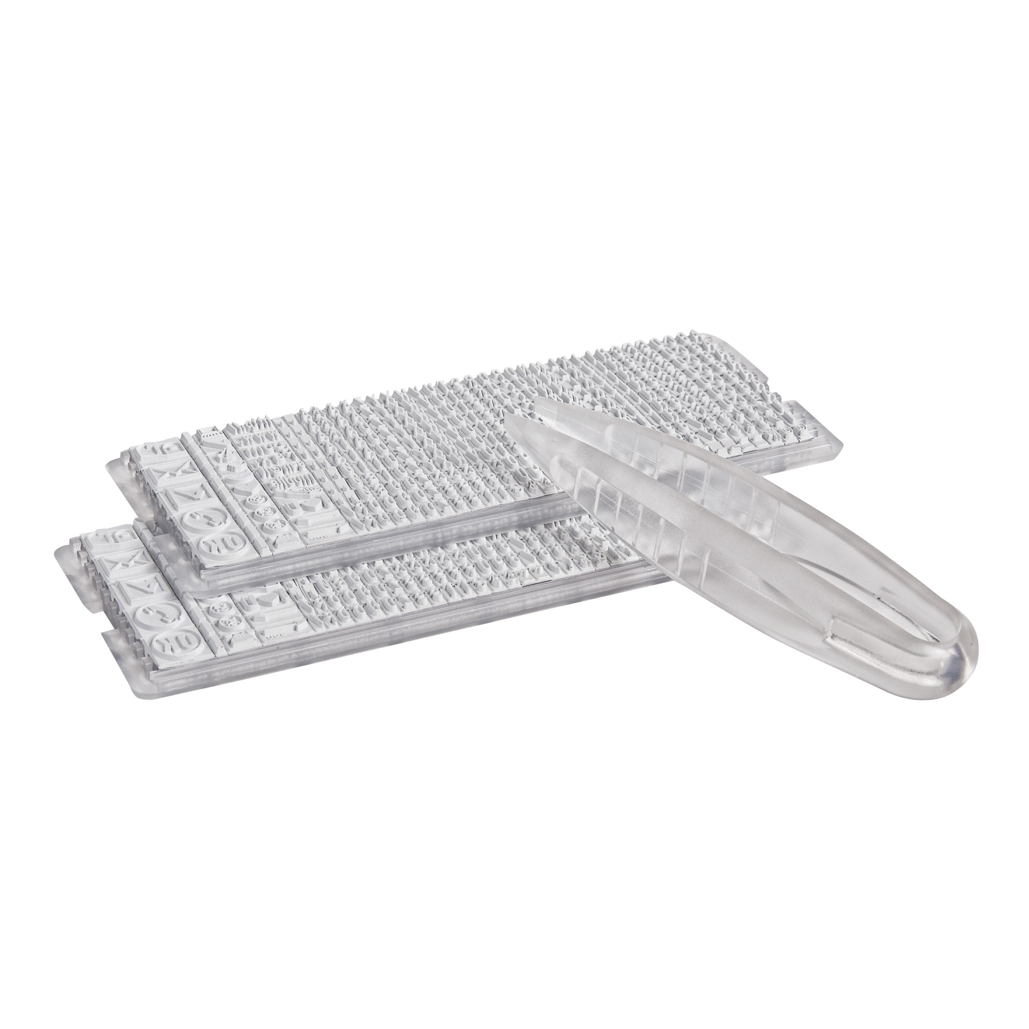 Typenset met alleen letters voor de Doe-Het-Zelf stempels van Colop. Bij deze Combi Logo Set TS 25 hebben de letters een hoogte van 2.5 mm hoog. Aantal pictogrammen 20 stuks.