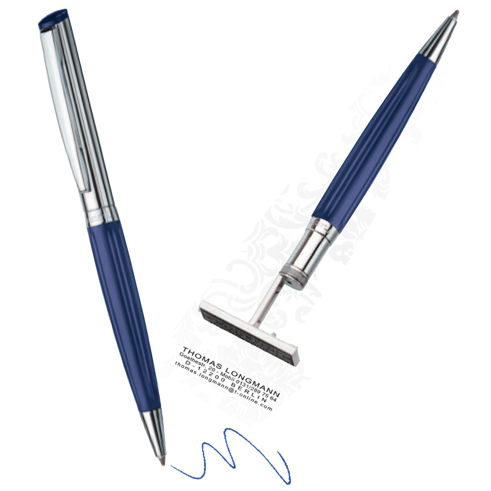 Stempelpen die vaak wordt gebruikt voor zakelijke doeleinden. Plaats in één handomdraai het gemaakte ontwerp op papier met de stempelzijde. De stempelpen beschikt daarnaast ook over een balpen. Eenvoudig om mee te nemen en komt professioneel over.