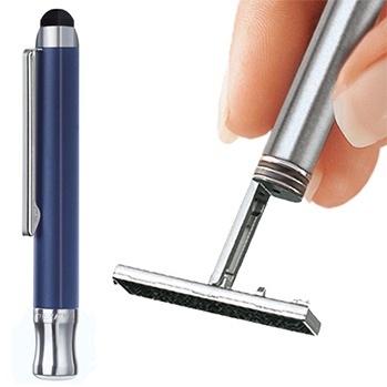 .Heri Travel Stamp & Touch 2303. Stempel met een blauw montuur en zwarte inkt. De tekst die erop moet bepaalt u zelf. Handig voor onderweg en tevens voorzien van een Touch Pad.
