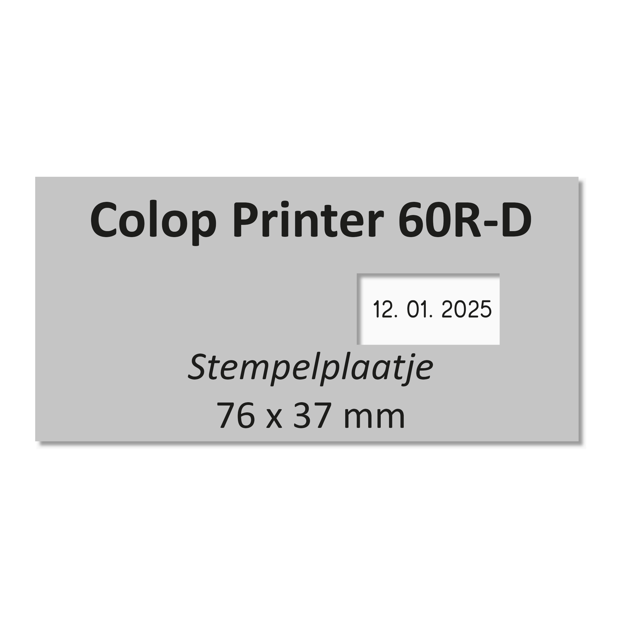 Bij de Colop Printer 60 DR stempelplaat plaats je de datum rechts van het midden en kan de rest van de tekst volledig naar wens kan worden aangepast.